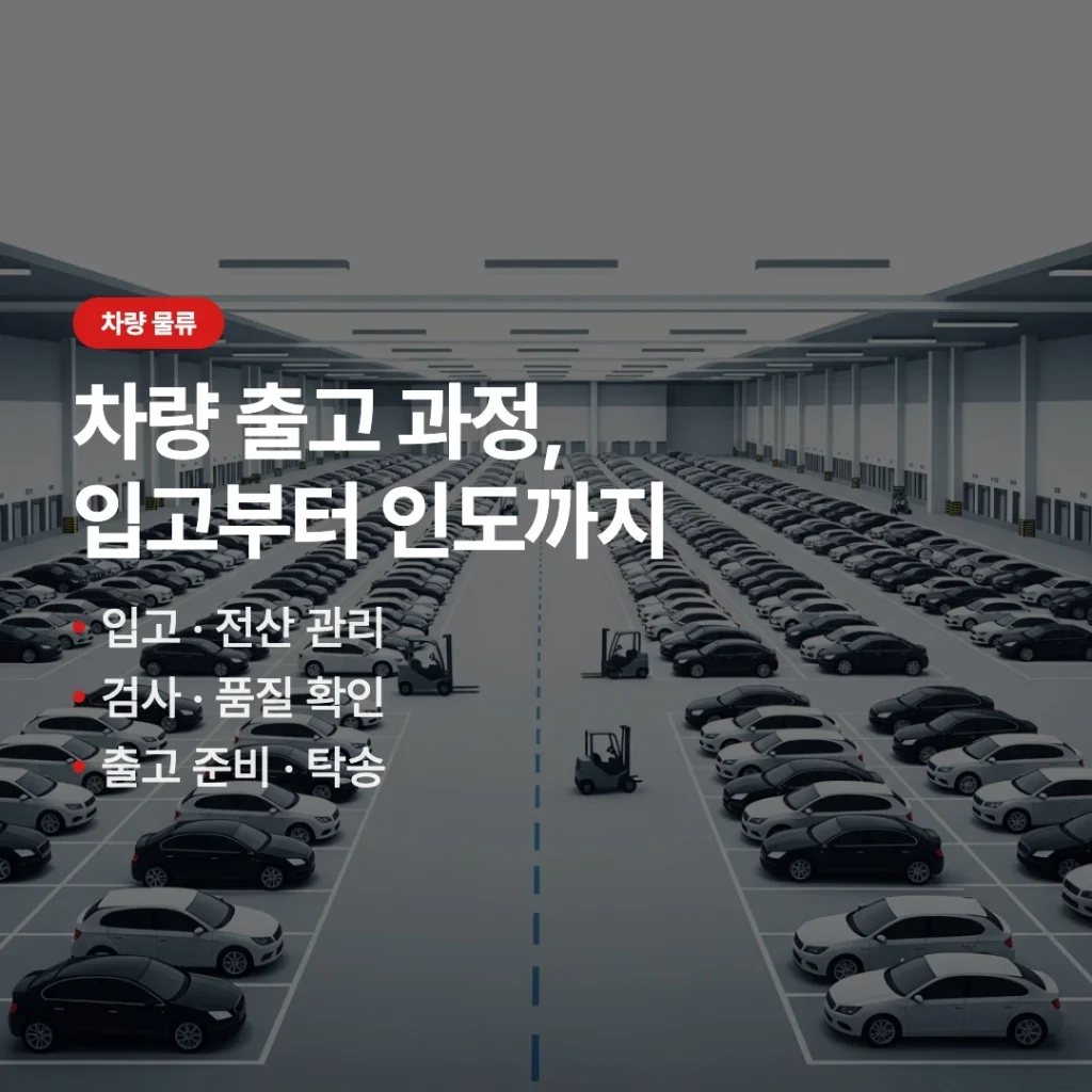 차량 출고 과정은 단순한 배송 절차가 아니라 차량 품질을 마지막으로 관리하는 단계입니다. 차량 입고부터 검사, 보관, 출고 준비, 차량 이동까지의 흐름이 안정적으로 연결될 때 자동차 물류 품질이 유지됩니다. 특히 수입차나 법인 차량처럼 물류 규모가 큰 경우에는 물류센터 운영 구조 자체가 차량 인도 품질을 결정하는 중요한 요소가 됩니다.